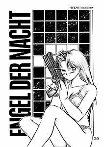 ←「SOLDATENTUM」 『追いつめられた囮部隊の最後の生き残り。彼の取った行動は…』 この本のために描き下ろした作品。16ページ。 一度は描いてみたかったロボットメカ物、だったんですが私には辛すぎました(^^;)。異様に時間がかかっているため絵もバラバラで悲しい出来です(苦笑)。 |